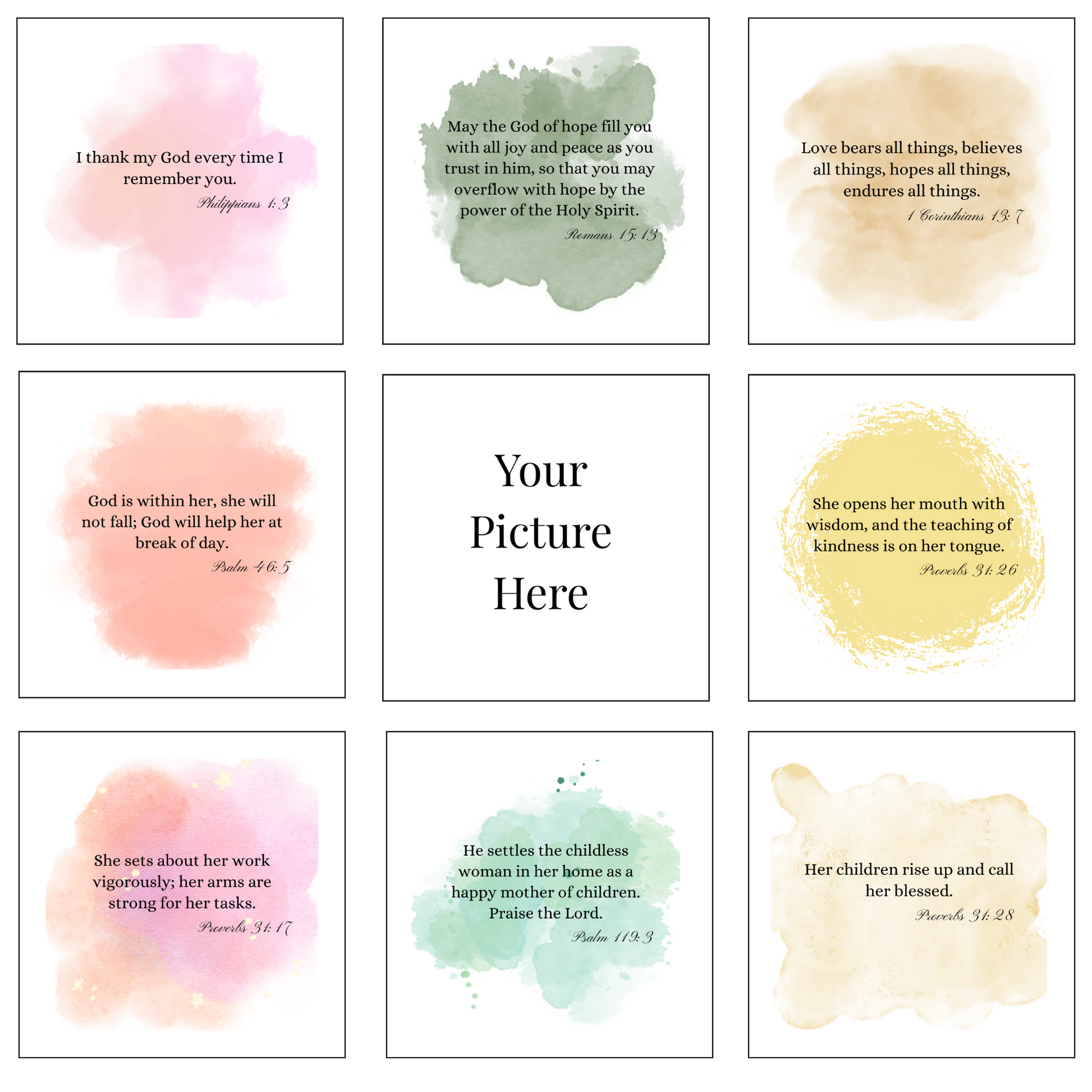 A gentle reminder of faith and love. This 9-piece magnet set features hand-picked scriptures and one personalized photo—made to uplift her spirit every day.