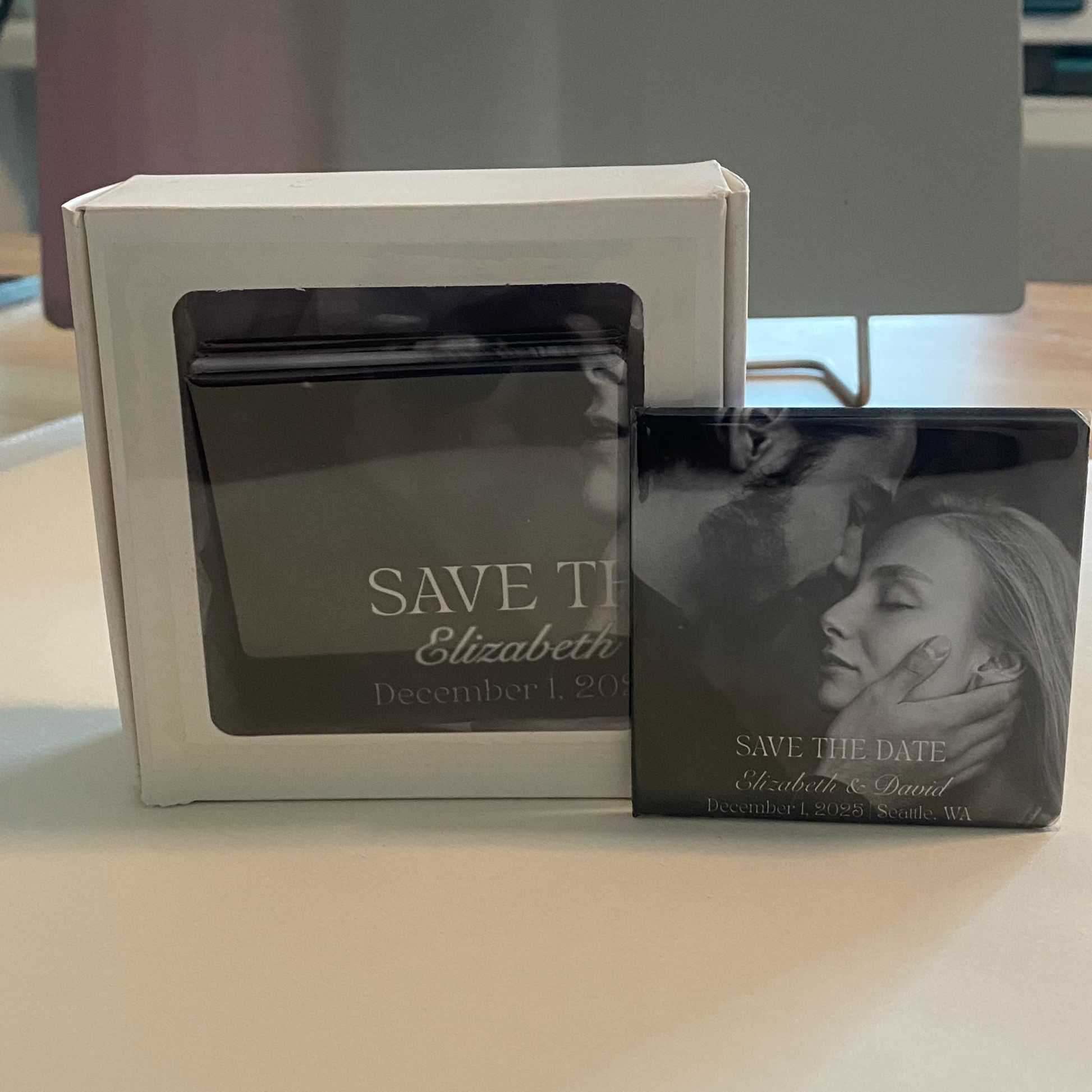 A Save the Date worth keeping. This 4-piece magnet puzzle arrives as separate tiles your guests can piece together—just like your love story. Beautiful, interactive, and unforgettable.